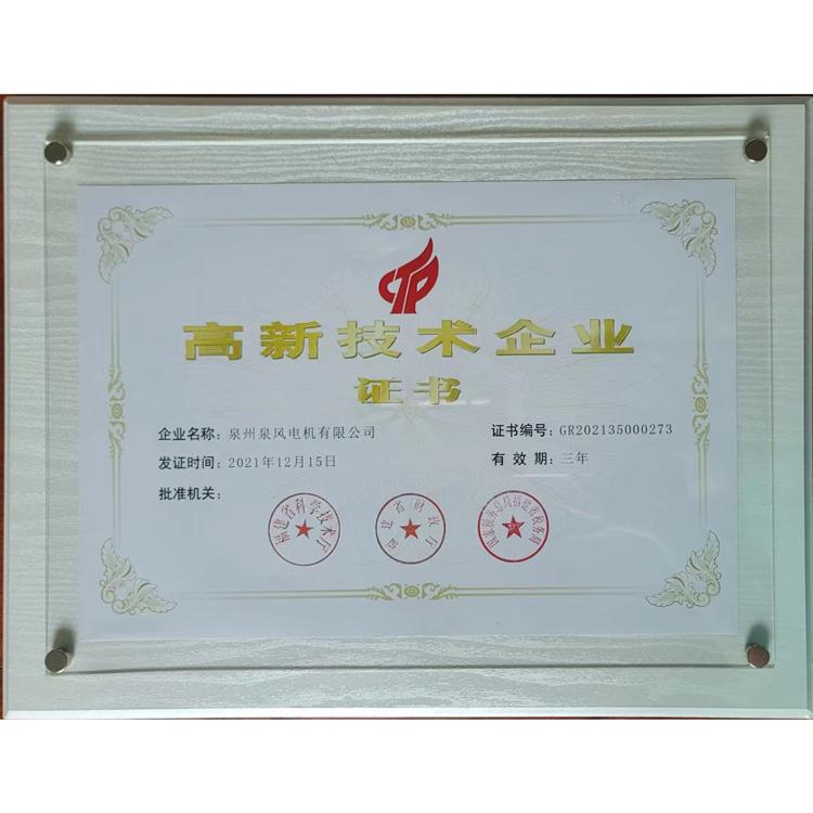 ??公司以建立現代化企業為目標,堅持“科技是首要生產力”,于2000年通過了ISO9001:2000國際質量體系認證、產品已獲得CCC強制性認證;美國UL、加拿大CUL、歐盟CE等安全認證。并獲得國家微電機產品檢測中心授予“行業監督抽查合格單位”及“九五質量水平優秀單位”,“泉風”牌風機被中國技術協會確定為 “風機行業質量十佳放心品牌”、“中國軸流風機十佳名優品牌”。“泉風”牌產品已通過福建省新產品鑒定并獲得“福建省科技成果獎”、“省級優秀新產品獎”、“省級科技進步獎”。 2006年度被福建省確認為“福建省高新技術企業”、“科技進步先進企業、“福建知名科技企業”。 “泉風”牌商標被評為“泉州市知名商標”。 2009年“泉風”牌商標被評為“福建省著名商標”。